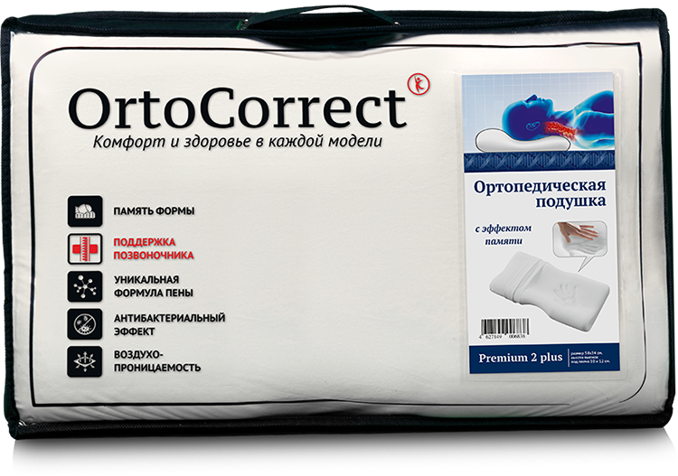 Подушки OrtoCorrect изготавливаются по высоким международным стандартам, на новейшем европейском оборудовании из высокотехнологичного материала «Memory Foam», с эффектом памяти (4 секунды). Наполнитель - экологически чистый, вязко-эластичный, вспененный пенополиуретан.
