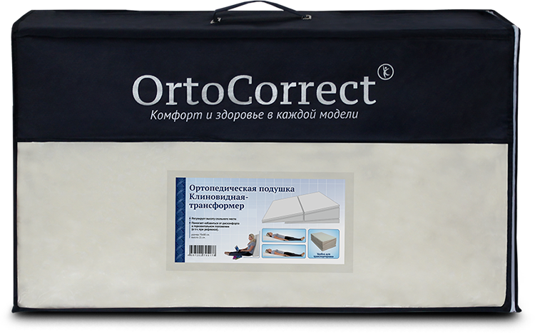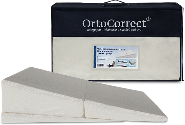 Подушка "Клиновидная трансформер OrtoCorrect" обладает конструктивной особенностью - её можно сложить пополам и, поместив изделие в удобную сумку-чемоданчик, взять с собой в путешествие.